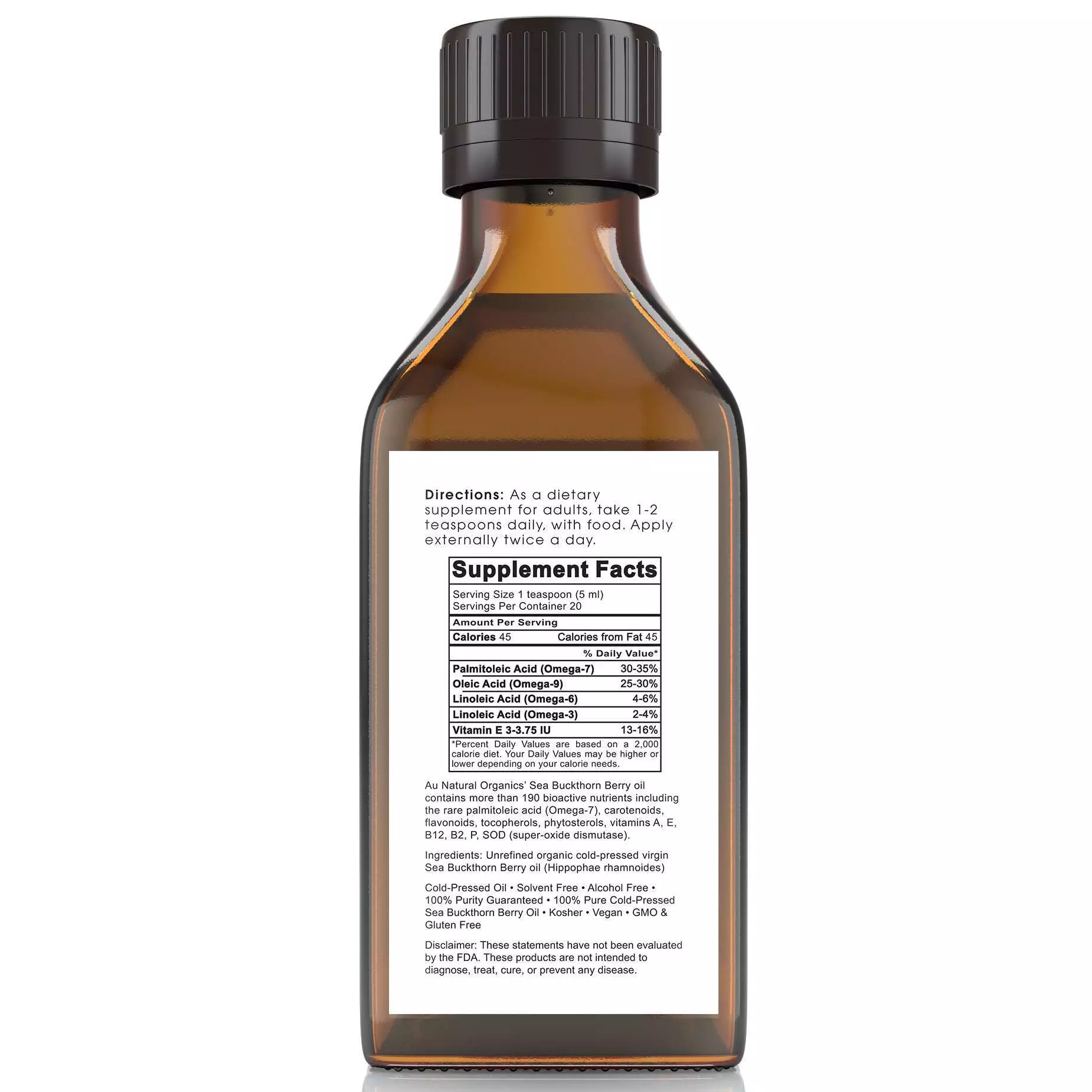 At Au Natural Organics, we are committed to providing you with the purest, most effective natural products. Our Sea Buckthorn Berry Oil is extracted using the cold-pressing method from the berries of the Hippophae rhamnoides plant. The berries that we carefully select are from Asia and Europe. This gentle process ensures that all the beneficial compounds are preserved, delivering a potent infusion of nature’s goodness.