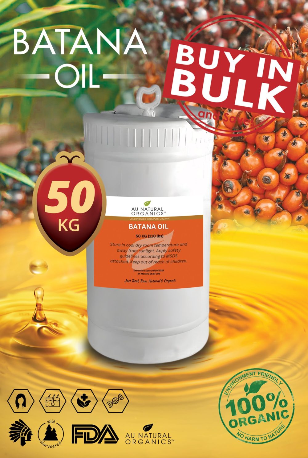 Now available in 50 KG wholesale quantities, our Batana Oil ensures consistent quality, potency, and performance for high-volume production.
